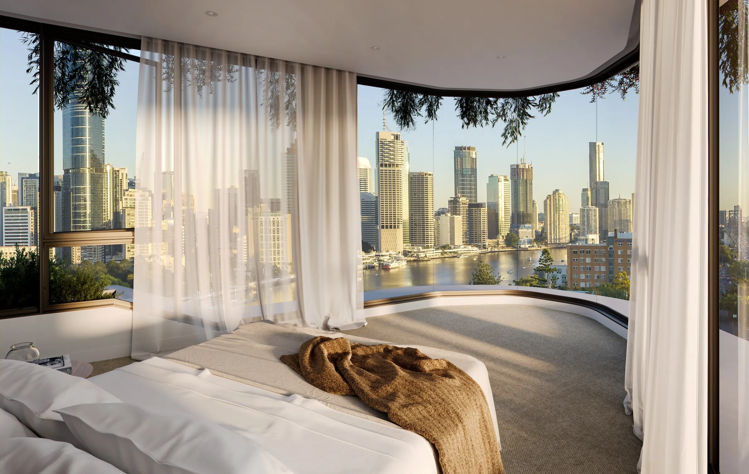 Perched high above the Kangaroo Point cliffs, the Skye Penthouse Collection redefines riverside luxury. Each residence is a private sanctuary suspended between the sky and the city, capturing sweeping views across the Brisbane River, Botanic Gardens and skyline.