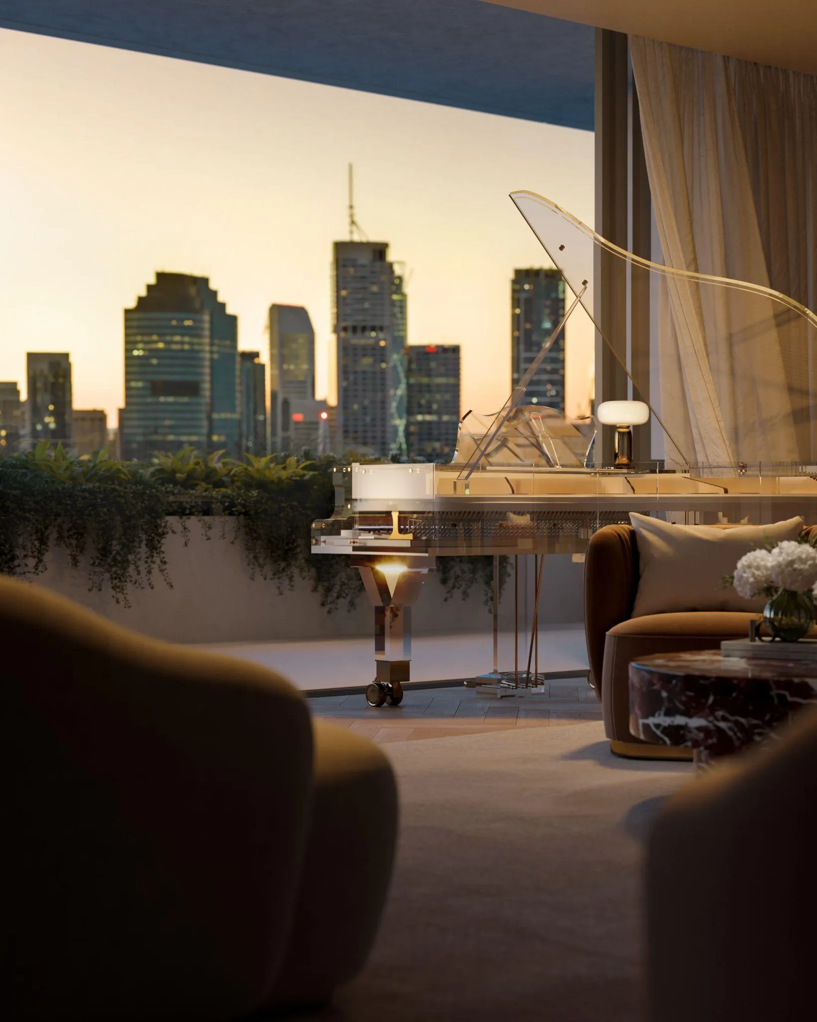 Each penthouse celebrates light, space and craftsmanship. Expansive terraces blur the line between indoor and outdoor living, while generous proportions invite a true sense of calm. Sophisticated finishes and custom joinery reflect the natural tones of the cliffs below, the river beyond, and the ever-changing city skyline.